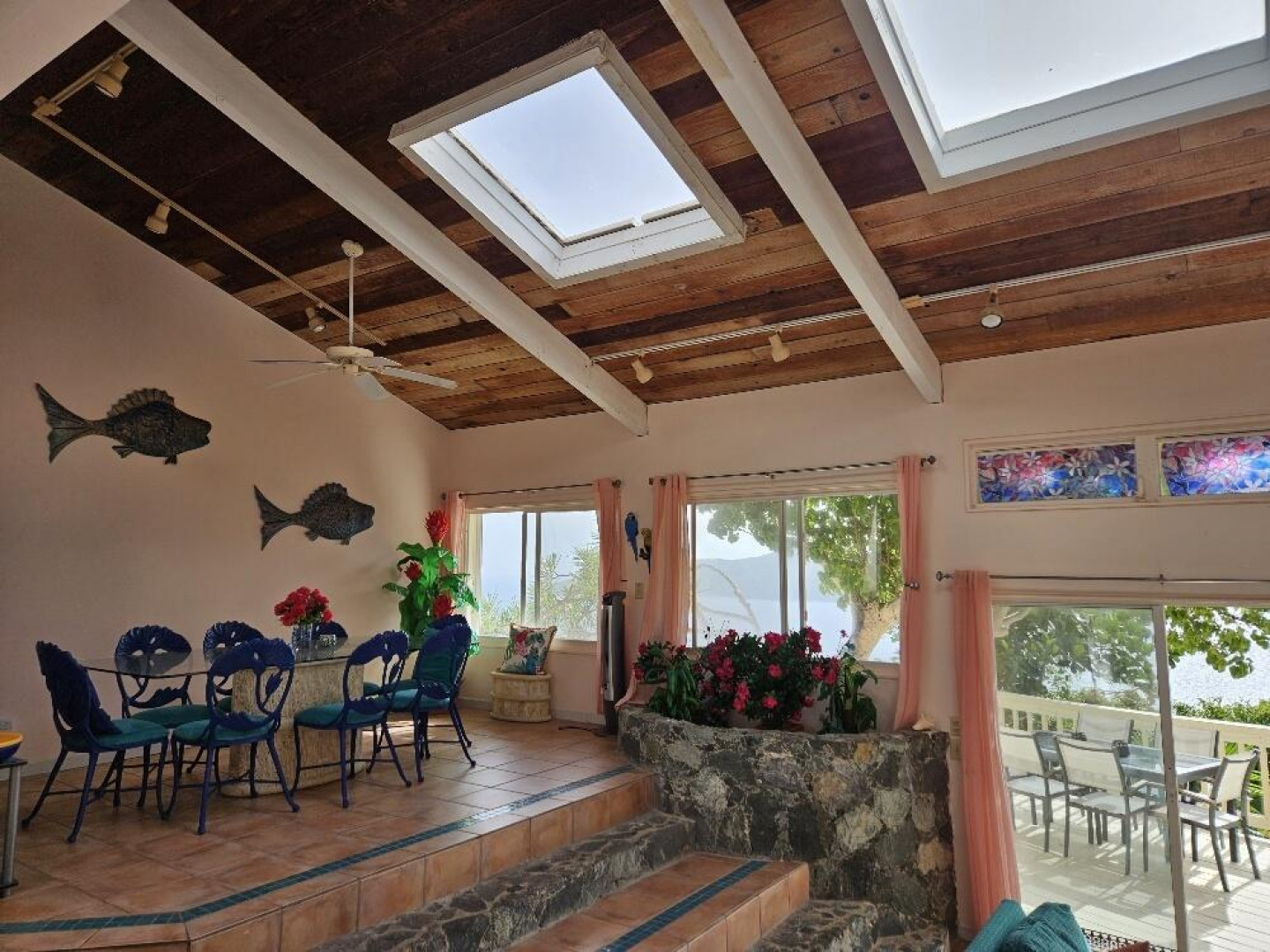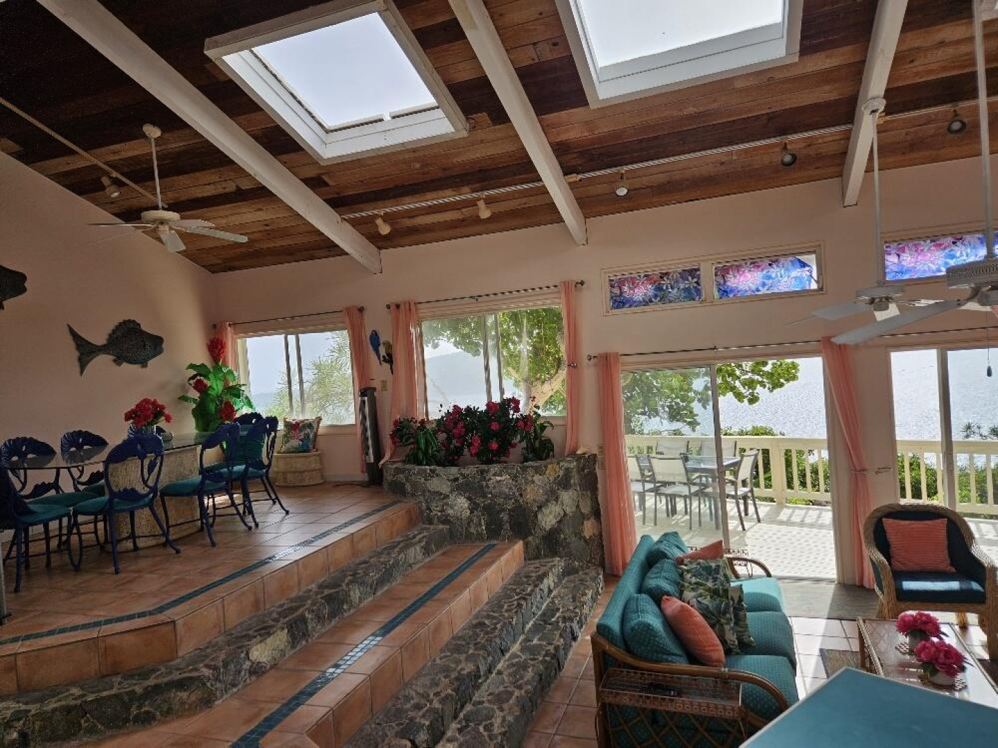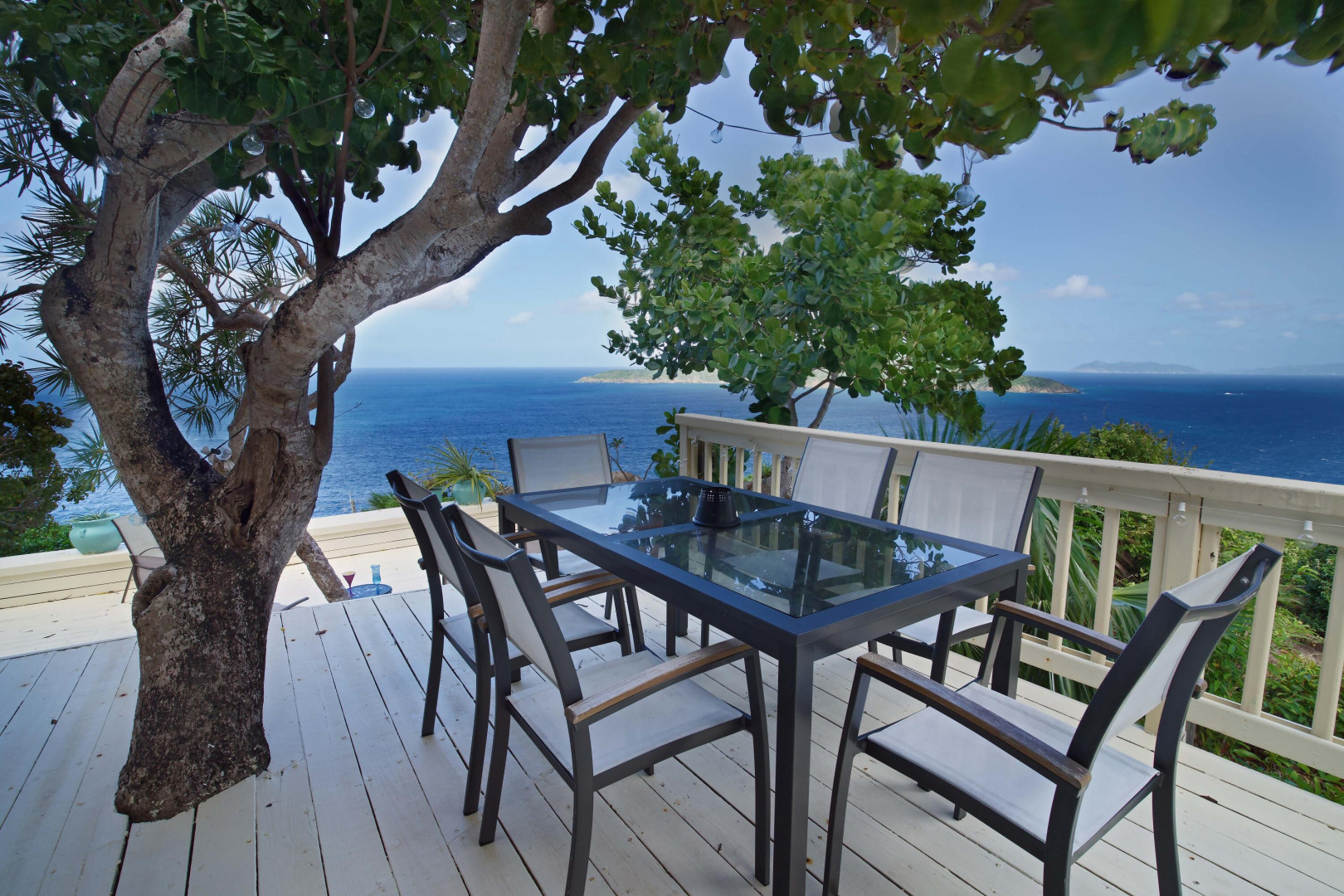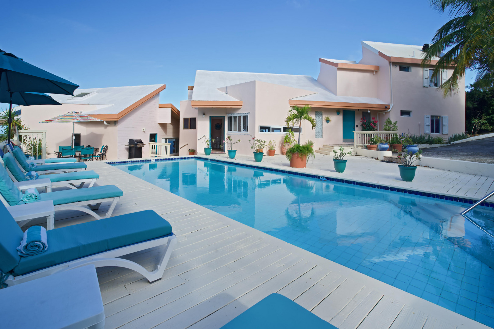 FAIRWINDS VILLA is perfectly situated on a large parcel of beautiful land totaling 1.124 acres with spectacular epic views of US islands and cays and British islands and even parts of Magen's Bay. Currently used as a second home and vacation rental, this 3 bedrooms, 3 1/2 baths villa is a great primary residence too. The 40' X 12' inground pool is surrounded by sun and shade decking and the grounds are tropically planted. Very private location within the gated D'Antilles Peterborg community. Standby generator w/ auto transfer, native stone walls, circular driveway and lots of parking. Lots of room for expansion and ability to build separate cottages for a family compound.