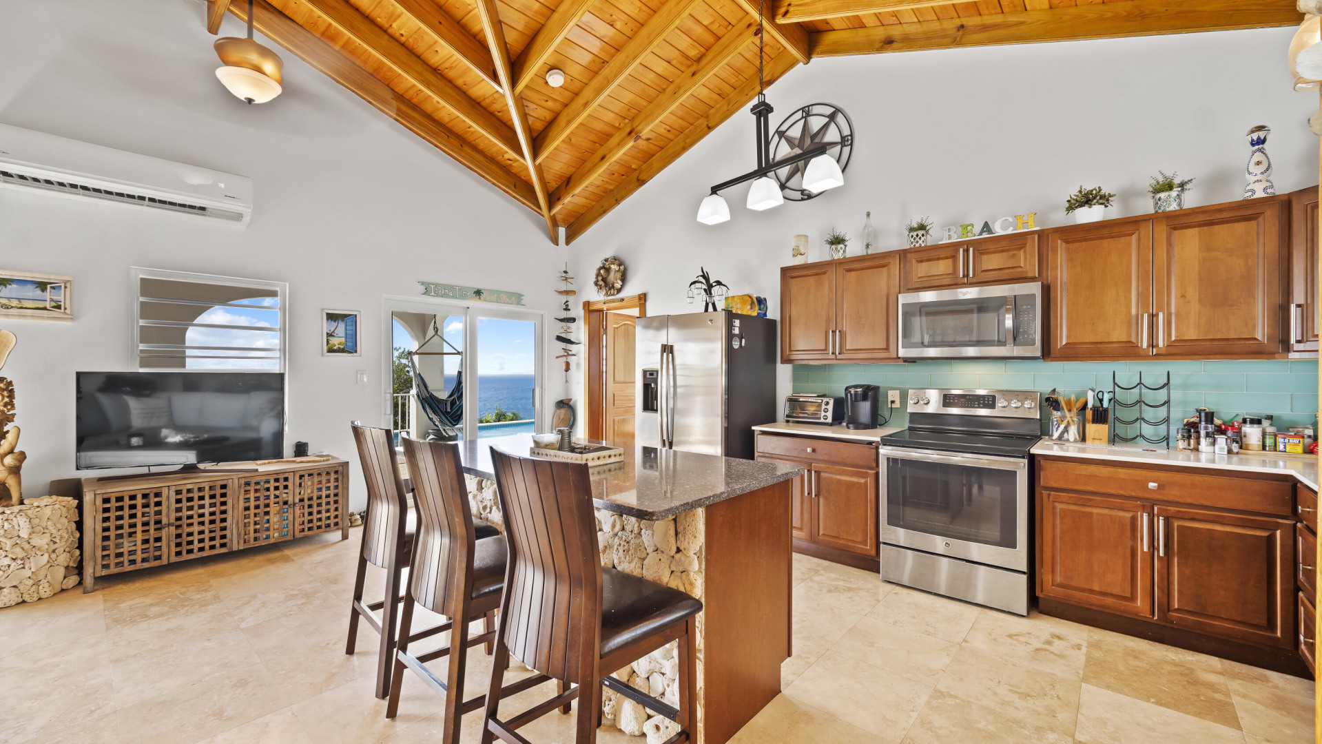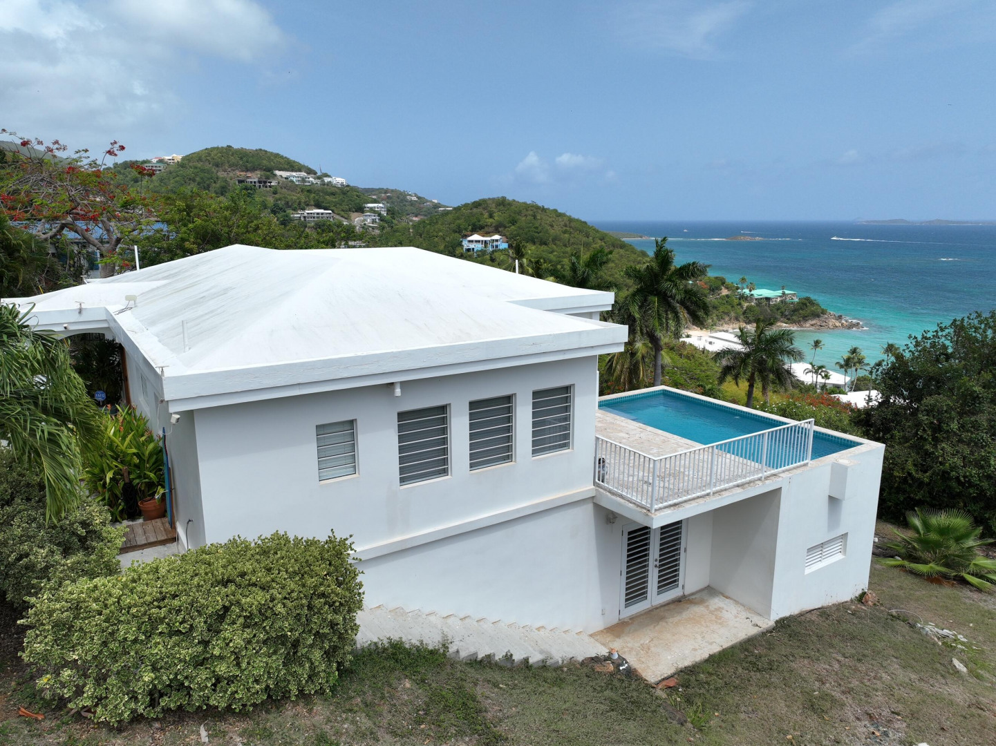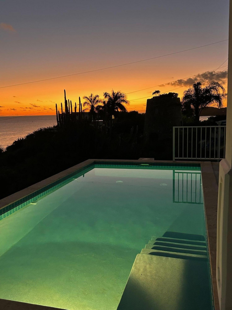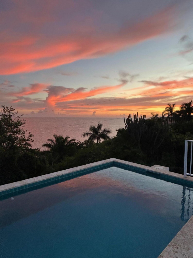 This light, bright Bakkeroe delight with views overlooking Morning Star Beach & extending out to the vast Caribbean Sea offers island appeal indoors and outdoors. 2 charming bedrooms & bathrooms on the main floor with a 3rd Bedroom & great room with exercise area below. Turn the lower level into a comfortable 1 Bedroom/1 Bathroom unit with the addition of a kitchen. Solid construction, clean finishes & tasteful furnishings on the inside & cool tropical breezes & a beautiful refreshing pool & deck on the outside. A short walk to the Westin Resort with its restaurants, beach & amenities. The appeal of this property is magnetic.