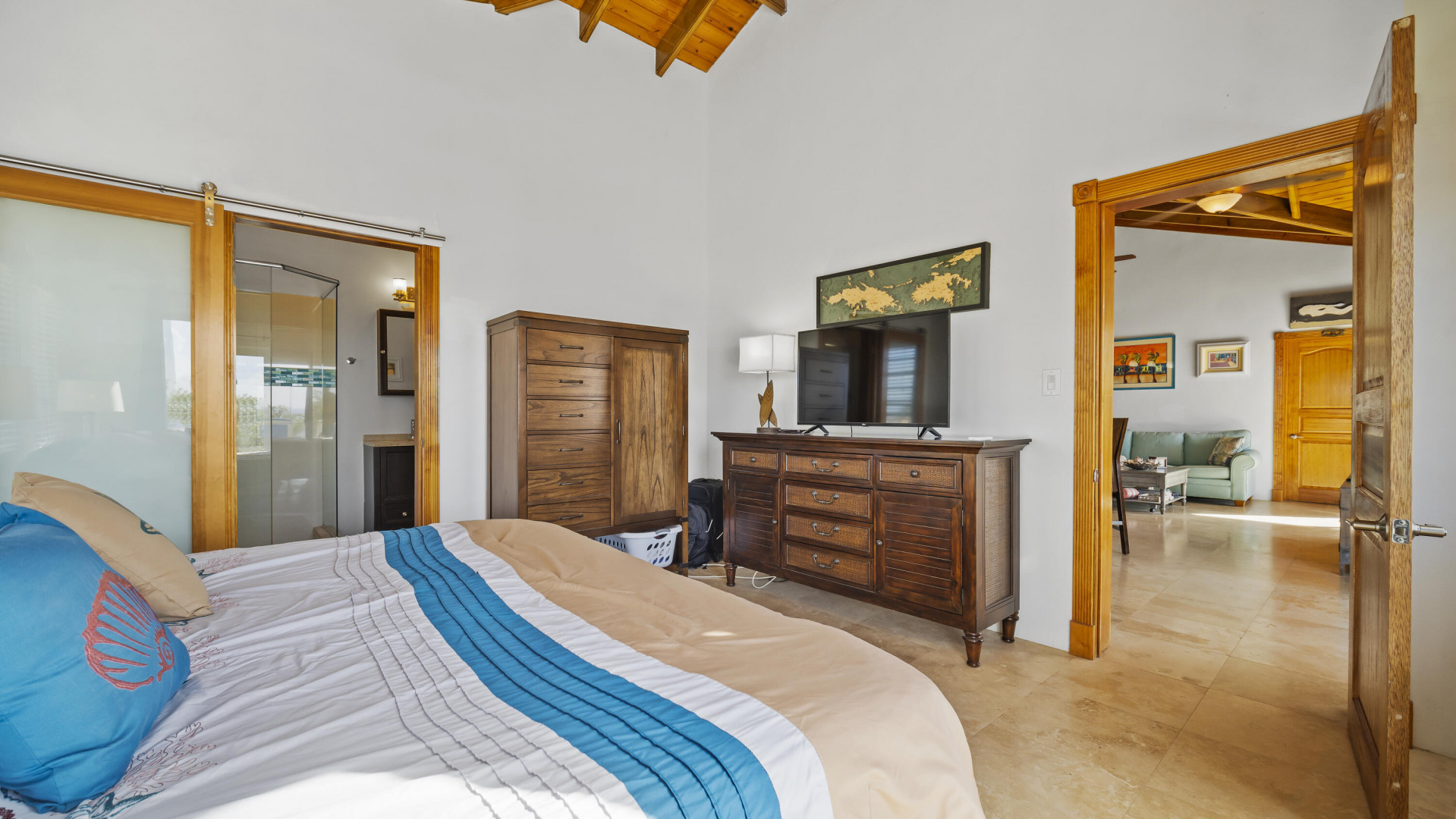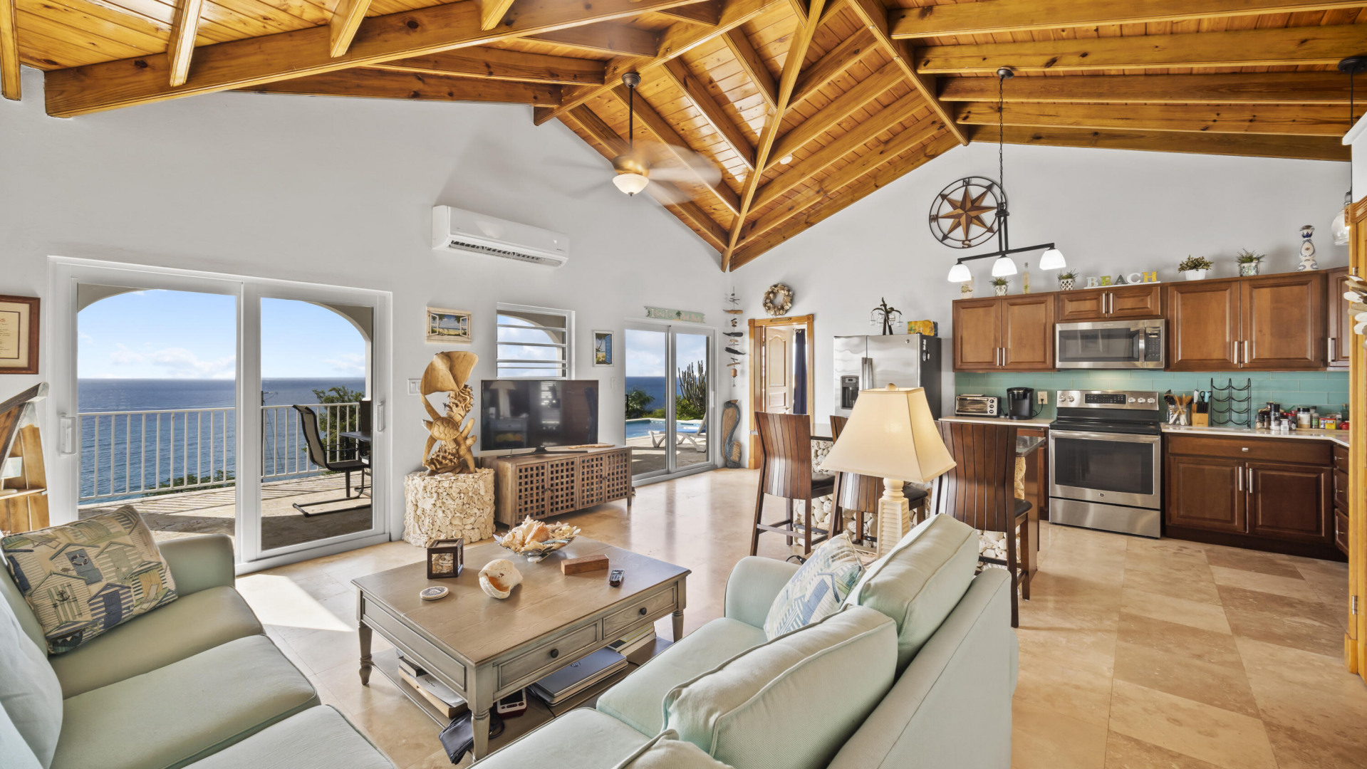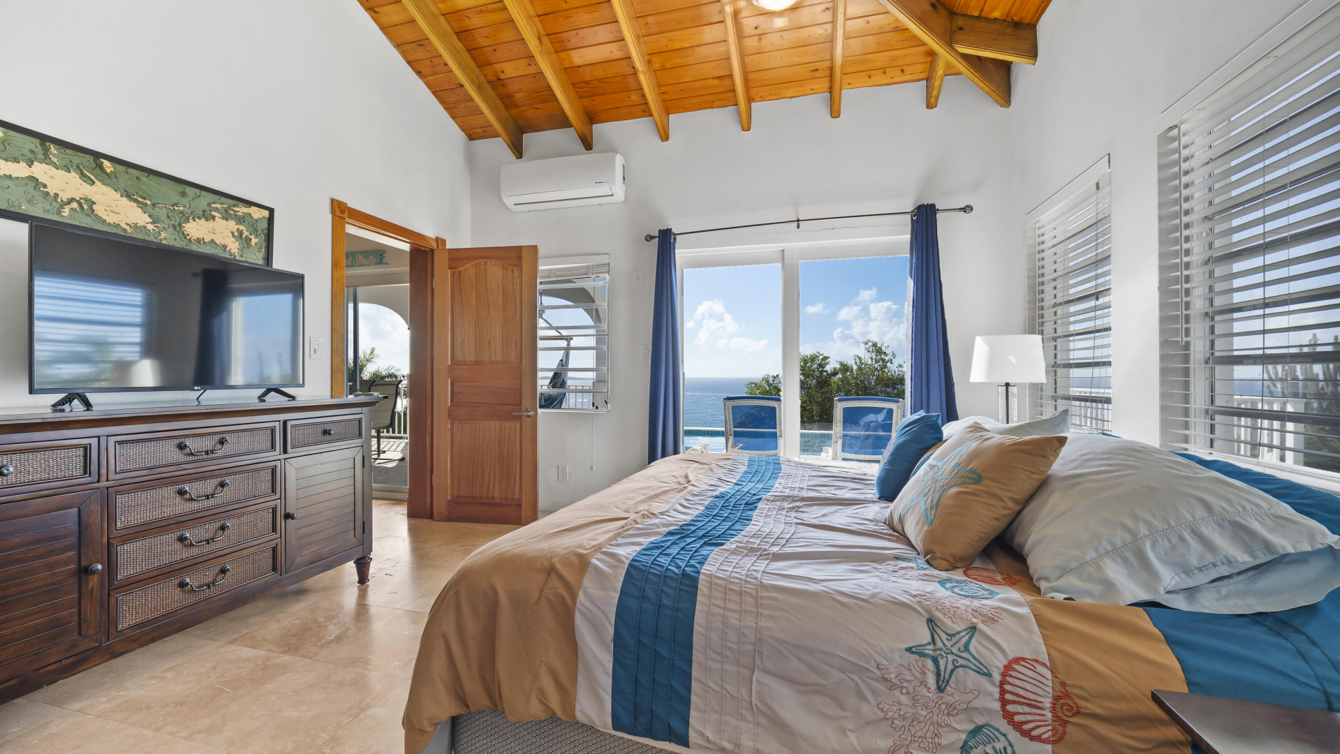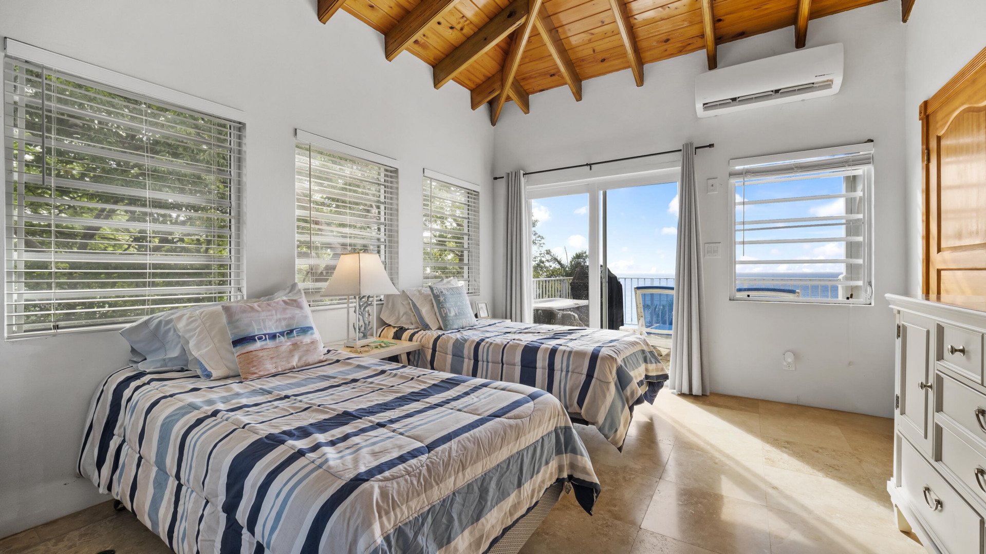 This light, bright Bakkeroe delight with views overlooking Morning Star Beach & extending out to the vast Caribbean Sea offers island appeal indoors and outdoors. 2 charming bedrooms & bathrooms on the main floor with a 3rd Bedroom & great room with exercise area below. Turn the lower level into a comfortable 1 Bedroom/1 Bathroom unit with the addition of a kitchen. Solid construction, clean finishes & tasteful furnishings on the inside & cool tropical breezes & a beautiful refreshing pool & deck on the outside. A short walk to the Westin Resort with its restaurants, beach & amenities. The appeal of this property is magnetic.