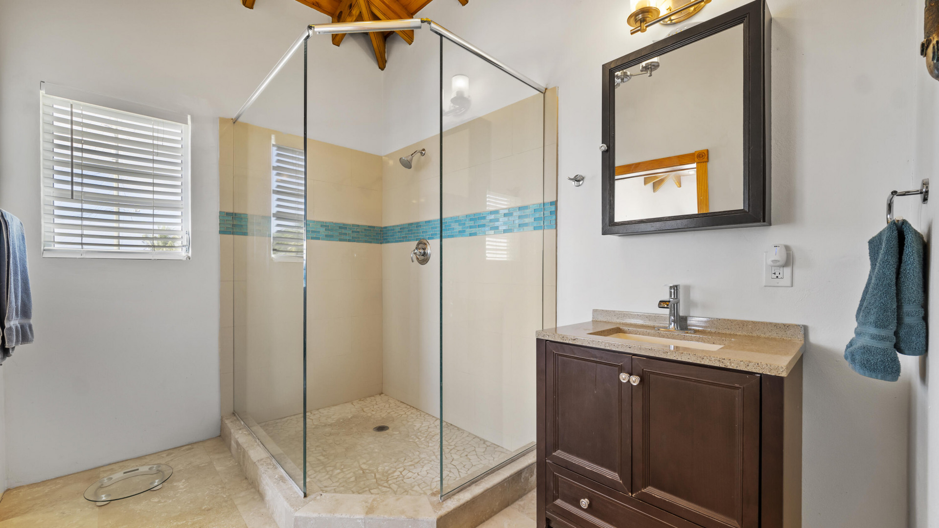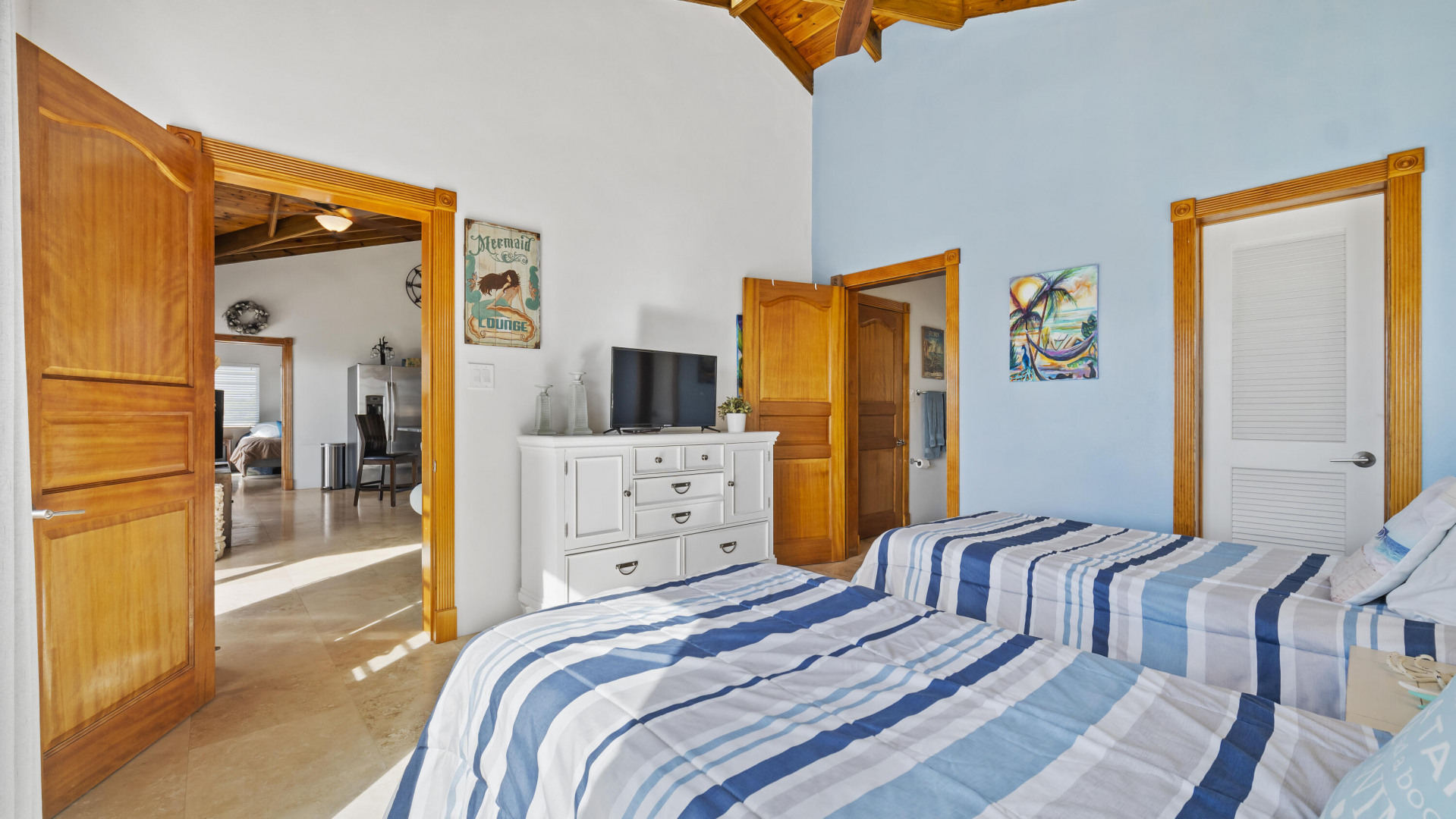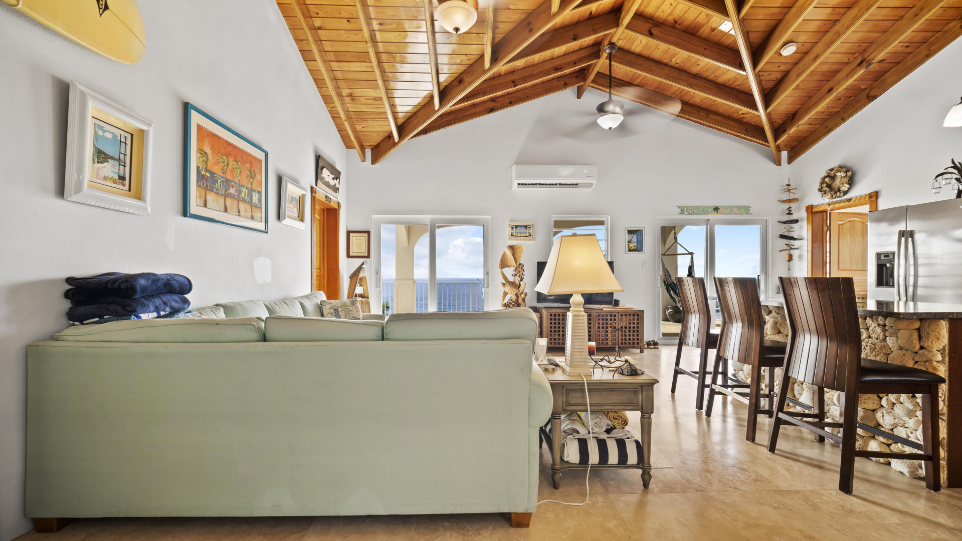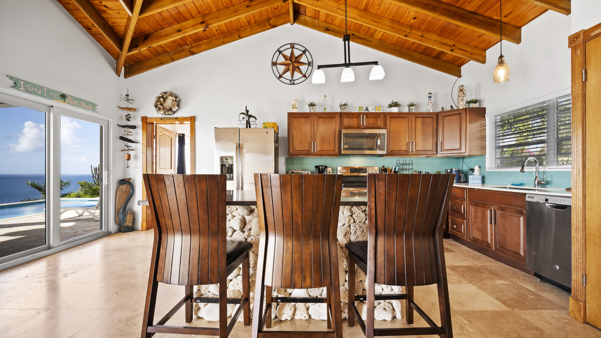 This light, bright Bakkeroe delight with views overlooking Morning Star Beach & extending out to the vast Caribbean Sea offers island appeal indoors and outdoors. 2 charming bedrooms & bathrooms on the main floor with a 3rd Bedroom & great room with exercise area below. Turn the lower level into a comfortable 1 Bedroom/1 Bathroom unit with the addition of a kitchen. Solid construction, clean finishes & tasteful furnishings on the inside & cool tropical breezes & a beautiful refreshing pool & deck on the outside. A short walk to the Westin Resort with its restaurants, beach & amenities. The appeal of this property is magnetic.