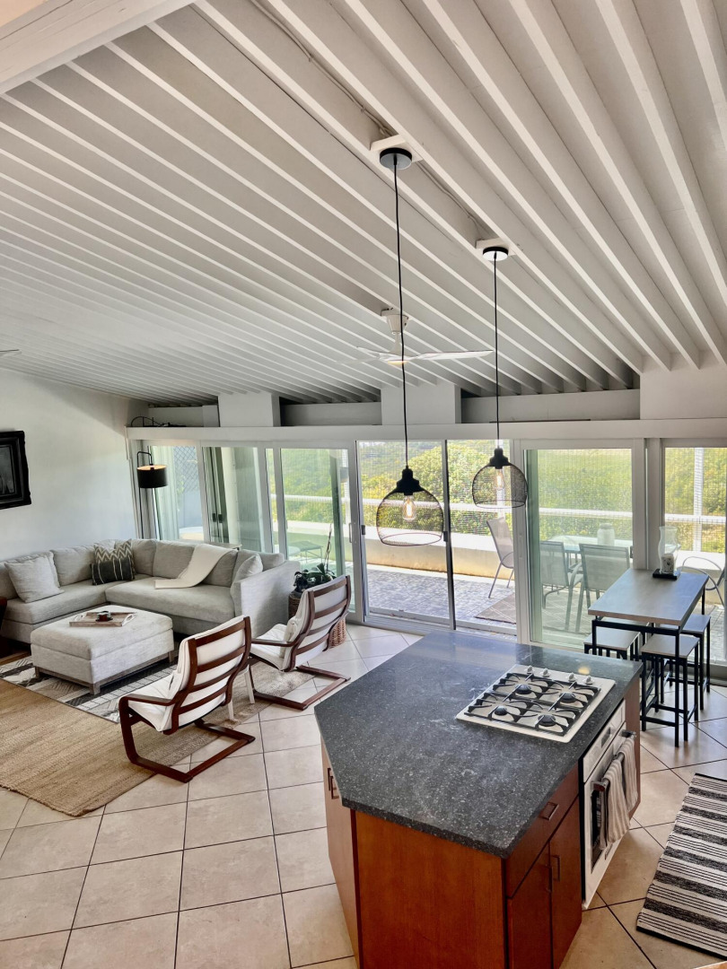 Welcome home to 308 Upper the coziest condo rental at Mahogany Run! This rare split level layout features cathedral ceilings, expanded bedrooms, updated bathrooms, quartz kitchen counters and open entertaining space, all nestled in private, cul-de-sac location, with good flat parking. Walk out onto the large porch where you are greeted with panoramic hillside and valley views that descend into Magens Bay, one of the top 10 beaches of the world. If you are seeking a rental that feels more like a home than a condo, is 5 minutes or less to Magens Bay, offers privacy and has a 24 hour security guard, look no further.