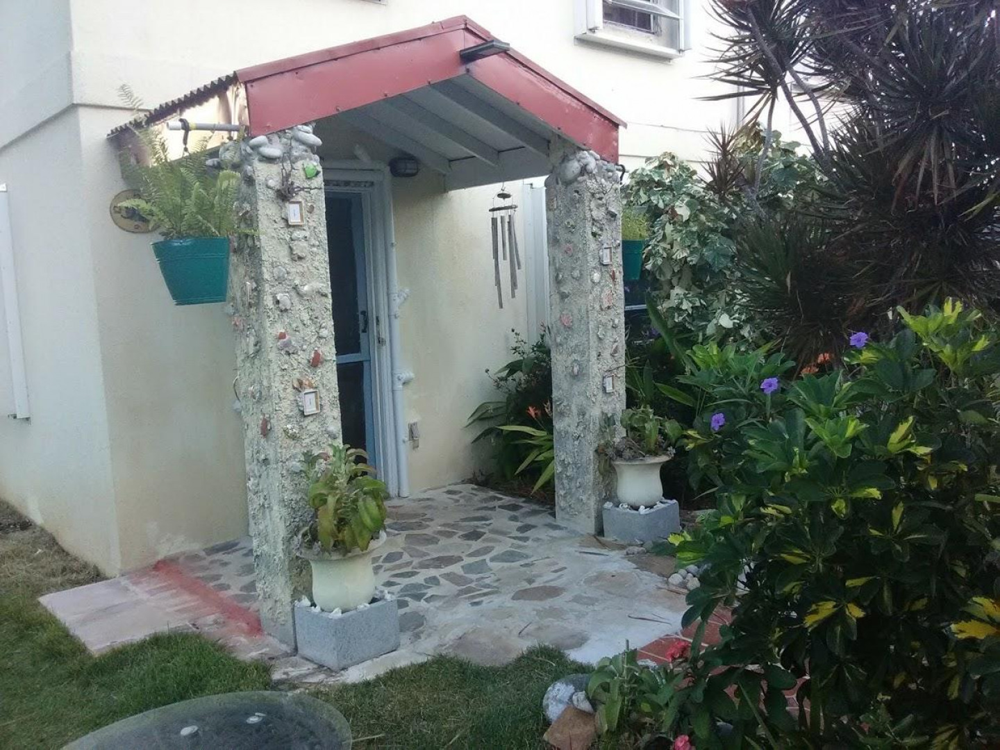 3 bedroom 1 1/2 bath end unit townhouse. Fully fenced, pets considered on a case by case basis. Mostly furnished, 3rd bedroom needs furniture. Very private and secure location, easy commute to UVI, airport and town. Excellent water view. A nice place to call home. 2 car parking too!. 1st, last and 1 months security due at signing.