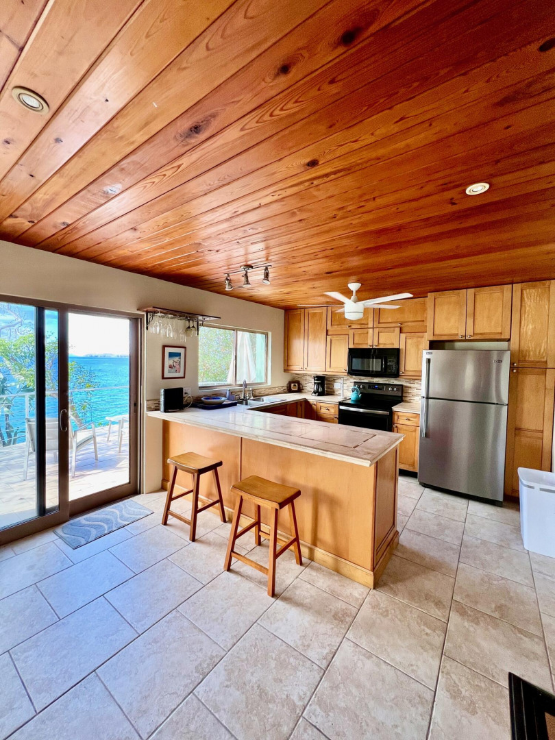 Private Executive Waterfront 2 bedroom/2 bathroom cottage Furnished, W/D upstairs, Full kitchen with DW. A/C in bedrooms and downstair living room. Expansive patio deck overlooking the water, watch all the boat activity going out of Red Hook. 40 KW GENERATOR AUTOMATIC. References required.
